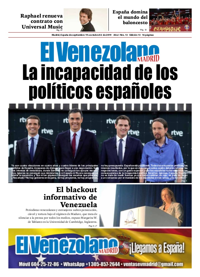 #Europa Lea Aquí Edición completa de Semanario El Venezolano Madrid: Incapacidad de políticos españoles