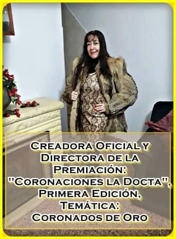 En conclusión, su galardón más destacado de doble estatuilla ha sido: ‘‘Funculatino Latin Music Awards – Latinoamericano de Oro’’; con su correspondiente designación como Vicepresidenta y Jefa de Prensa, de estos eventos venezolanos en Argentina y la »Gran Función de Gala aniversario» del Estudio de Danzas; y con la designación de Embajadora Emérita de la CONLEAM (Confederación Latinoamericana de Escritores, Artistas y Músicos del Mundo).