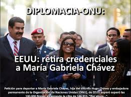 Esta misma medida se le aplica también a María Gabriela Chávez, hija del fallecido Hugo Chávez, que a petición para deportar como ex embajadora permanente de la Organización de Naciones Unidas (ONU), de EEUU superó superó las 100.000 firmas, alcanzando la cifra de 146,915.