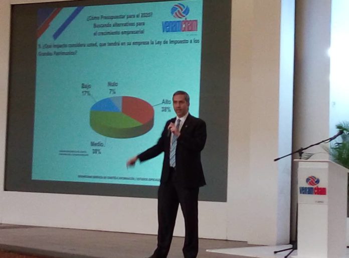 El vocero de la Cámara Venezolano-americana de Industria y Comercio Venamcham, Alberto Herrera, informó sobre el resultado de una encuesta de coyuntura hecha entre 72 empresas de esa entidad gremial en donde se preguntó acerca de las perspectivas para la economía nacional para el año 2020.