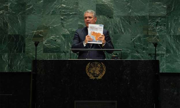 “Amenazas a la democracia, la seguridad y la paz regional” es el nombre del dossier que el presidente Iván Duque le entregó personalmente a António Guterres, secretario general de Naciones Unidas, en el que demuestra los supuestos nexos de Nicolás Maduro con el cartel de drogas mexicanos, según lo manifestó en su discurso en la 74 Asamblea General de esa organización.