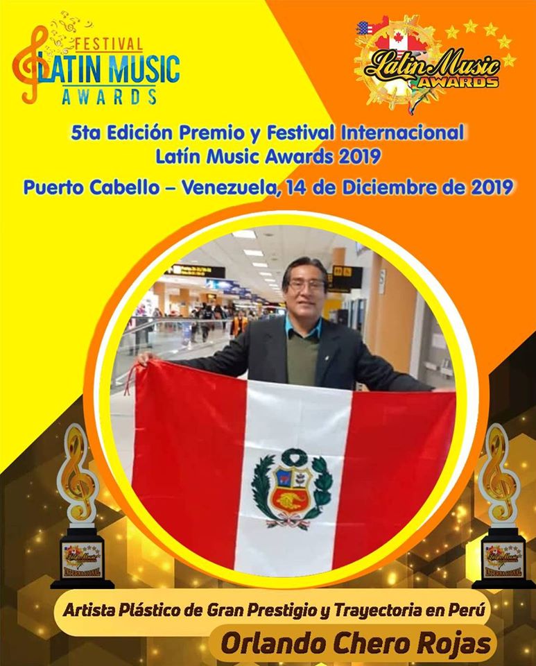El cultor latinoamericano, Orlando Chero Rojas ha sido nominado como Artista Plástico de Gran Prestigio y Trayectoria en Perú, a la 5ta. entrega del Premio y Festival “Latin Music Awards 2019, evento que se desarrollará el sábado 14 diciembre, en las Instalaciones del histórico e imponente Teatro Municipal de Puerto Cabello estado Carabobo en Venezuela.