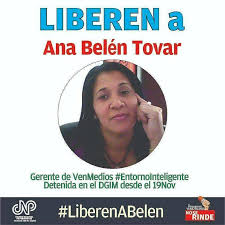 La periodista Ana Belén Tovar se encuentra detenida desde el pasado martes 19 de noviembre de 2019, cuando funcionarios de la Dirección General de Contrainteligencia Militar (Dgcim) allanaron la sede de Venmedios y la arrestaron sin orden judicial.