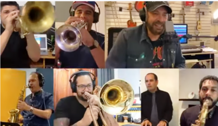 Asimismo, el vídeo que compartió la estrella en su cuenta de Instagram; muestra a cada uno de los participantes en sus casas interpretando el coro, tocando algún instrumento y a Guerra en el centro cantando el famoso tema.