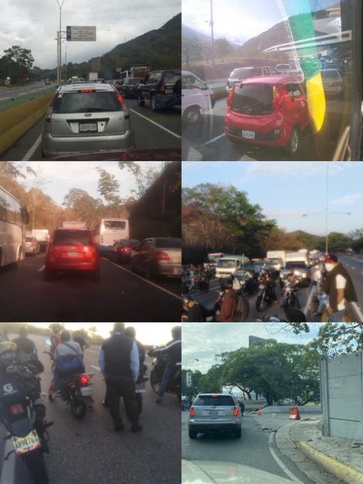 Usuarios de las redes sociales han reportado fuerte trásito vehicular que se ha generado en las autoipistas, Caracas- La Guaira, Carretera Panamerica, la Auitopista Gran Mariscal de Ayacucho y Autopista Regional del Centro, aseguran que los efectivos militares solicitan salvoconducto para poder permitir el paso de vehículos.