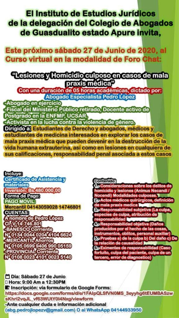 En esta oportunidad, no podemos pasar por alto, la situación de nuestra Venezuela, pues no escapa a esta dramática realidad y nosotros en esta parte de Apure, con la caída de más del 50% del Producto Interno Bruto (PIB), la llegada de la pandemia vino a profundizar la frágil situación que atravesamos los sectores vulnerables y los abogados no somos la excepción.