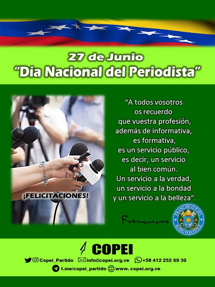 El 27 de junio de cada año se celebra en Venezuela el Día Nacional del Periodista, en homenaje a la salida, en 1818, del primer ejemplar del periódico Correo del Orinoco, creado por Simón Bolívar, con la colaboración de Juan Germán Roscio, Cristóbal Mendoza, entre otros y se instituyó en 1964.