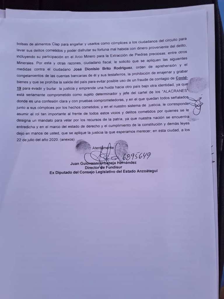 Fue solicitado oficialmente, la captura del diputado José Brito Rodríguez presidente ad hoc del partido político, Primero Justicia, por ser el líder del Cártel «de Los Alacranes» que está al servicio del empresario Alex Saab.