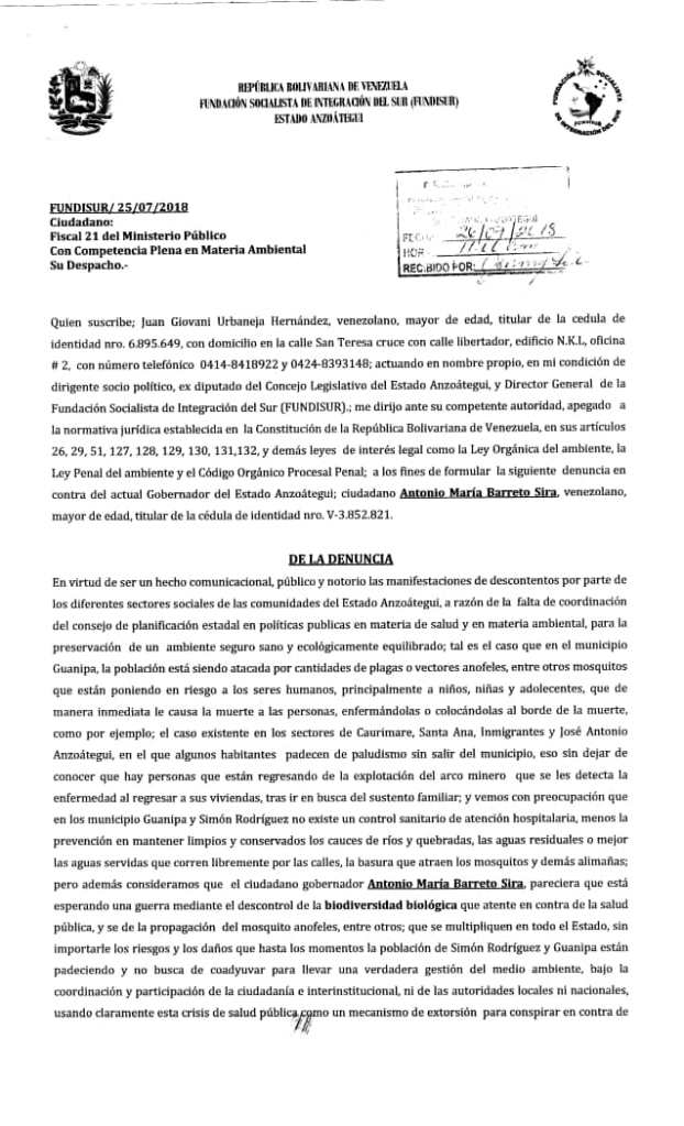 Urbaneja indicó que en el siguiente escrito están los detalles…