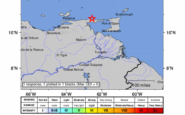 Según el reporte del Servicio Geológico de Estados Unidos confirmó el movimiento telúrico a 34 kilómetros al noroeste de Güiria, pero con una magnitud de 5.0.