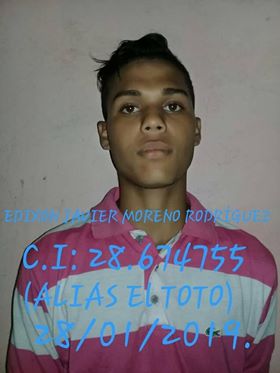 Un sujeto de alto índice delictivo, específicamente relacionado con robos y atracos de motocicletas y teléfonos celulares de última generación, cayó fulminado de dos impactos de proyectiles en el pecho al enfrentarse a una comisión de funcionarios del Centro de Coordinación Policial N° 07 de Guanarito, del estado Portuguesa. Según se desprende de las informaciones oficiales sobre el caso, el hecho aconteció el pasado sábado en una zona urbana guanariteña en momentos cuando la comisión policial bajo órdenes y supervisión del comisionado agregado (CPEP) licenciado Santana Báez, cumpliendo instrucciones del comisario general (CPEP) abogado Juan Toro Castillo, avistaron y reconocieron al individuo que buscaban y le solicitaron se entregara, pero éste optó por pretender escapar y en la intención de escabullirse se introdujo en una vivienda, esgrimiendo y accionando al mismo tiempo un arma de fuego tipo escopeta de fabricación rudimentaria, con la cual disparó contra los policías, quienes al ver sus vidas en peligro respondieron a la agresión e impactaron con proyectiles de su armas orgánicas en dos ocasiones la humanidad del mismo. Se resalta en la información obtenida que este sujeto fue identificado como Edixon Javier Moreno Rodríguez, alias “el Toto”, y presentaba registros judiciales en tres ocasiones, y el cual se había convertido en un peligroso azote de Guanarito. La Fiscalía 8va del MP a cargo del doctor Jesús Díaz conoció del hecho y profundiza en la investigación.