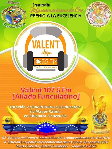 Valent 107.5fm, ja sido nominada para la próxima entrega de los Premio Latinoamericano de Oro como Estación de Radio Cultural y Educativa de Mayor Rating en Chiguará- Venezuela.