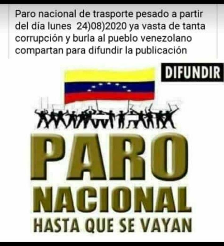 Ante la más grave crisis en toda la historia de Venezuela, por la pésima gestión del presidente Nicolás Maduro, dirigentes del sector nacional de transporte pesado, convocan a un paro el próximo lunes 24 de agosto.