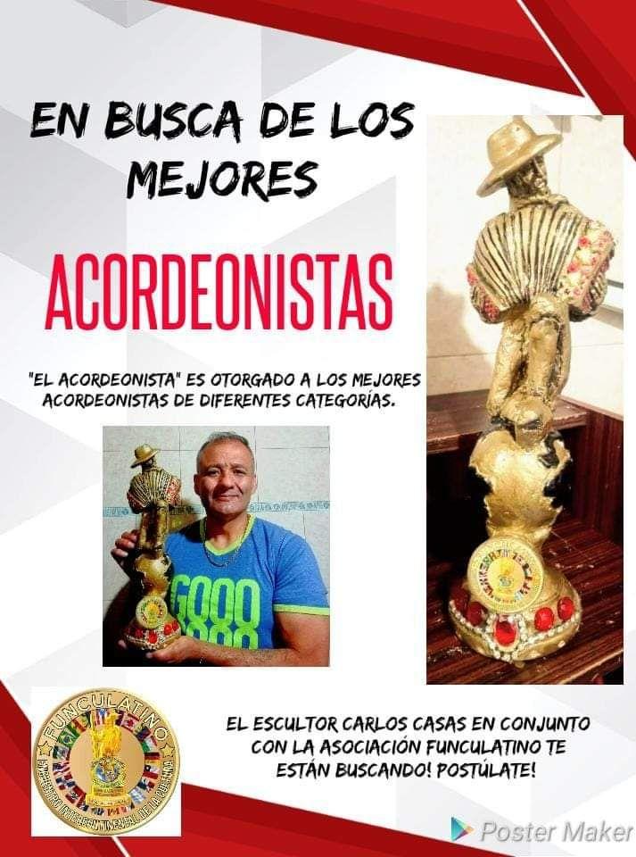 premioaordeondeoro@gmail.com (premioaordeondeoro@Gmail.com) Contacto con Organización Funculatino +58 4145700024 / Escultor Carlos Casas 0297155085004/ +54 92974682701 …!!! Página web oficial http://www.premiointercontinentallatinoamericanodeoro.com …
