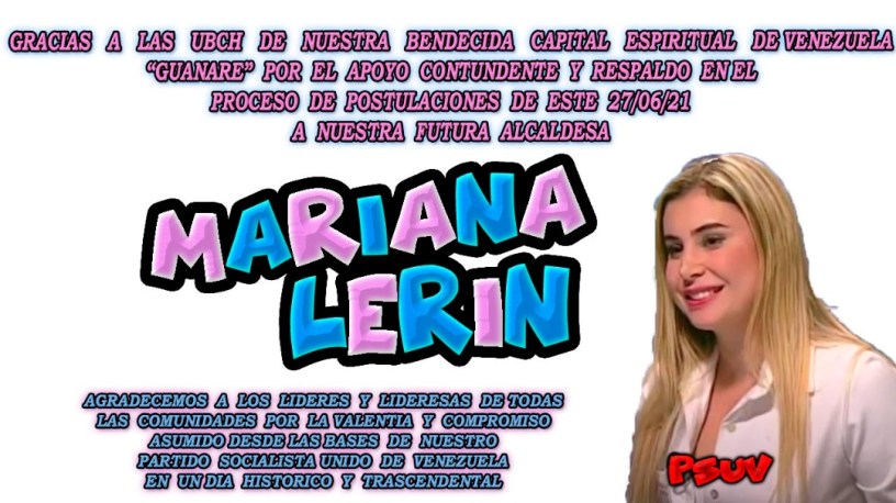 Que serán los abanderados del PSUV por la ciudad Capital del estado. Me veo en la obligación de informar que por decisión del Equipo Político Nacional fui excluida de dicha contienda. Decisión que ACATO con total y absoluta disciplina revolucionaria. Al mismo tiempo debo hacer de su conocimiento que Mi persona fue quien alcanzó el mayor número de votos y postulaciones en la ciudad capital.