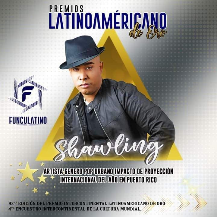 En el marco de la 93° Edición de los Premios Latinoamericanos de Oro y Funculatino se complace en galardonar a los mejores talentos del globo teraqueo, por eso en esta ocasión, se engalana con la nominación especial al intérprete boricuia, Shawling como:Artista del Género Pop Urbano Impacto de Proyección lnternacional del Año en Puerto Rico.