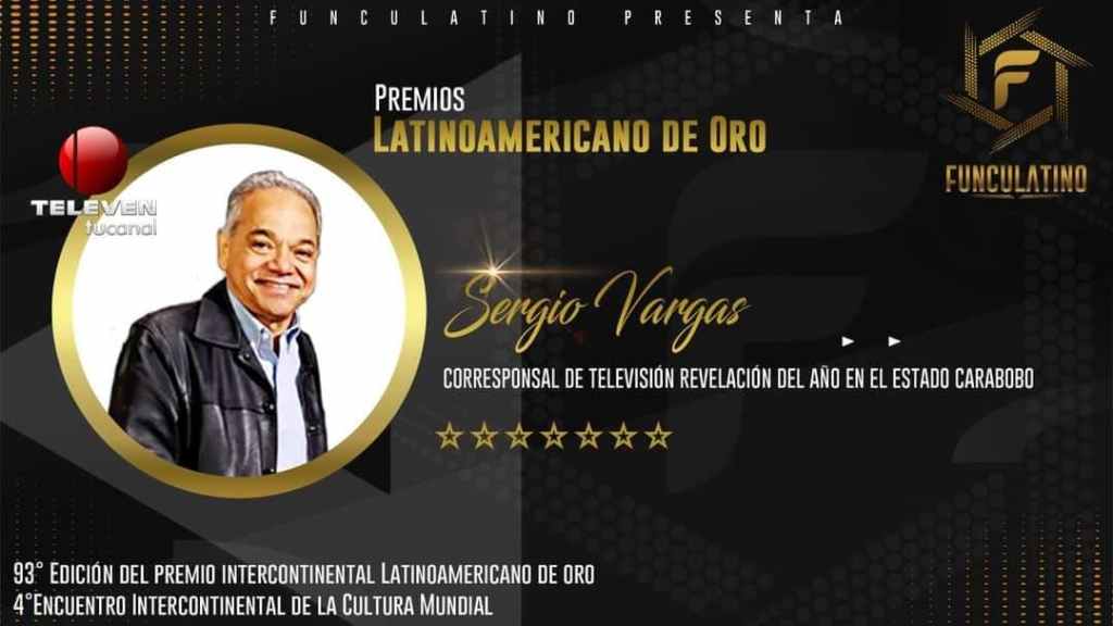 En esta ocasión la Fundación Cultural Latinoamericano de Oro (Funculatino), hace un reconocimiento especial al programa Vitrina, en sus 10 años de éxitos; a Sergio Vargas como extraordinario hombre de TV y Televen, Tu Canal, recibirán este año, sus Premios Latinoamericano de Oro 2020-21, haciendo la mejor televisión de Venezuela.