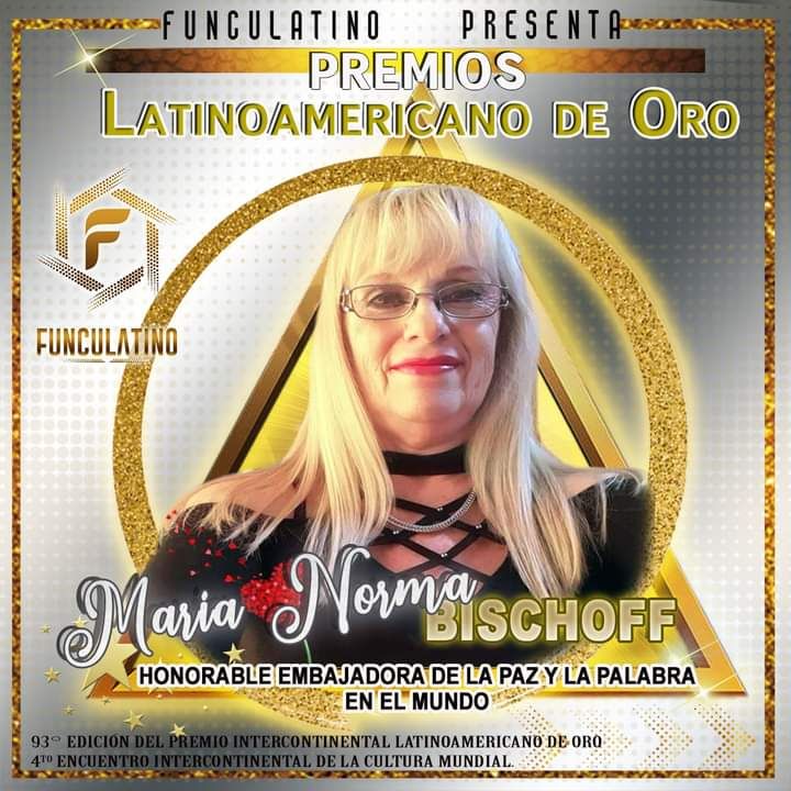 El presidente de Funculatino, expresó que María Norma Bischoff es socia de POESAT (Poetas del Mundo), de (REMES) Red Mundial de Escritores, de U.E.A.T (Unión de Escritores y Artistas de Tarija) Creadora y fundadora de SI.D.E.ON.IN (Sistema de Educación Emocional Online Internacional). Fundadora y creadora de CON.L.E.A.M (Confederación Latinoamericana de Escritores, Artistas y Poetas del Mundo).