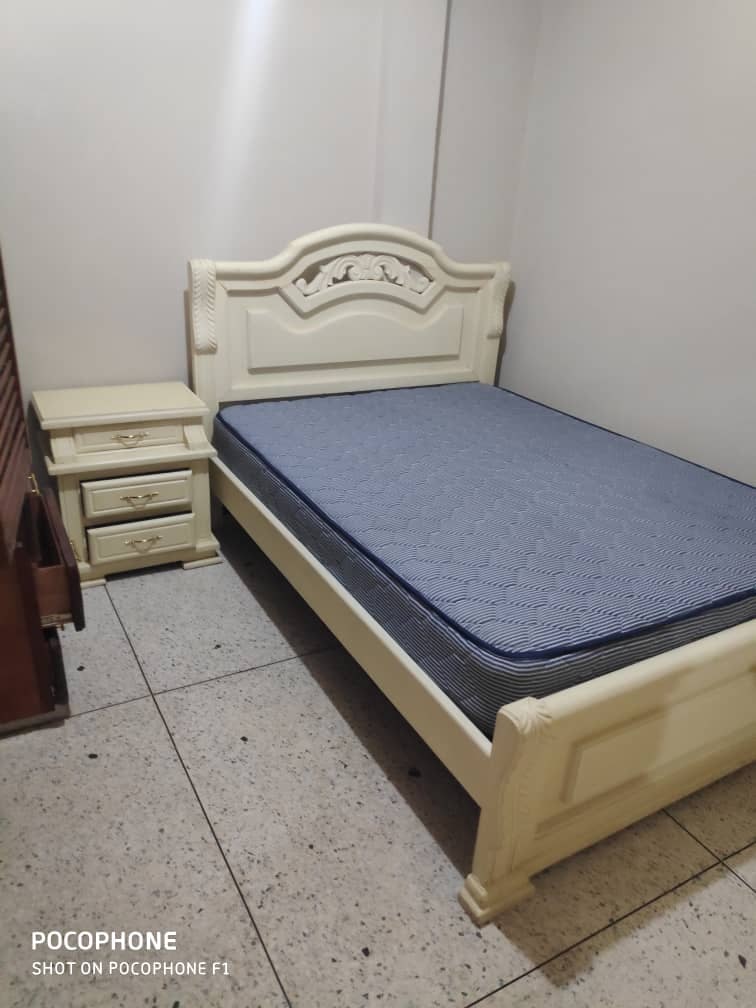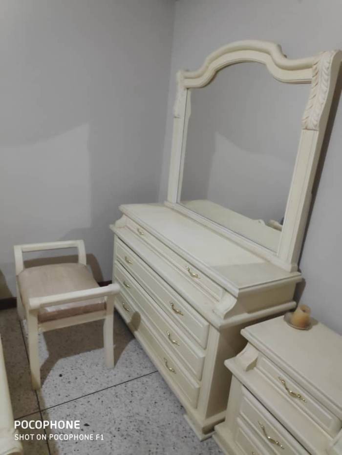 Se vende Cama matrimonial. Colchon. Dos mesitas. peinadora y banco.