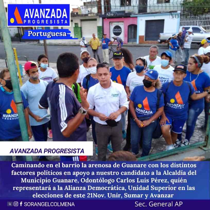 Los lideres y militancia del partido AP están activos en las calles y barrio de Guanare con Carlos Luis Pérez, de cara a las elecciones del próximo 21 de noviembre, ya listo preparados con nuestros padrones electorales, a objeto de resguardar los votos y trabajar de la mano para obtener la victoria dijo Sorangel Colmenares coordinadora regional del partido en el estado Portuguesa y Alexander Tovar, coordinador de organización.