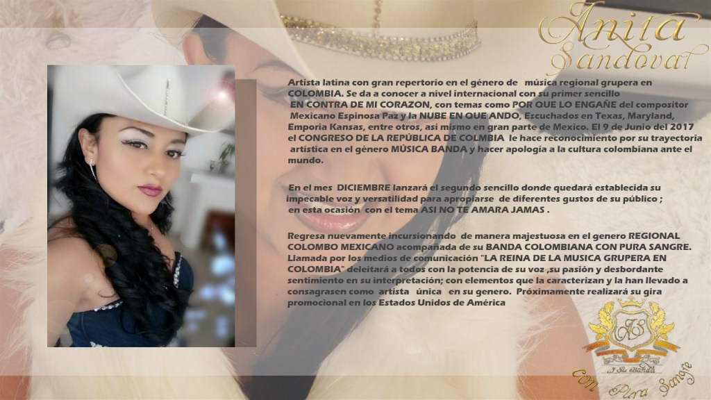 La conocida vocalista, Anita Sandoval, «La Reina de la Música Grupera de Colombia», ha sido nominada como Artista Género Grupero Destacada del año en E.E U.U., para recibir en Venezuela, el Premio InterContinental LatinoAméricano de Oro 2020-21.
