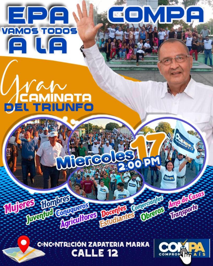 Luego de haber sido el único candidato que ha recorrido las parroquias y diversas comunidades radicadas en cada una de las caseríos, barriadas y urbanizaciones del municipio Turén, Gustavo Rattia, recibió el respaldo de casi el 90 por ciento de sus habitantes; el próximo alcalde de esta región llanera y el equipo Compa al concejo municipal, están invitando a la Gran Caminata del Triunfo, este miércoles 17 de noviembre a las 2:00pm saliendo desde la Zapatería Marka en la calle 12 de la ciudad capital del Granero de Venezuela.