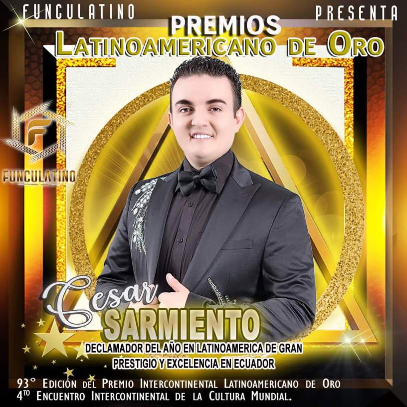 Todo está listo para disfrutar de la edición 93 de la gran entrega del Premio Intercontinental Latinoamericano de Oro 2020-21, donde el ecuatoriano, Cesar Arturo Sarmiento León, recibirá una distinción muy especial tal como lo afirmo la junta directiva de la Fundación Cultural Latinoamericano de Oro, en la persona del presidente de esta organización, Luis Camejo.