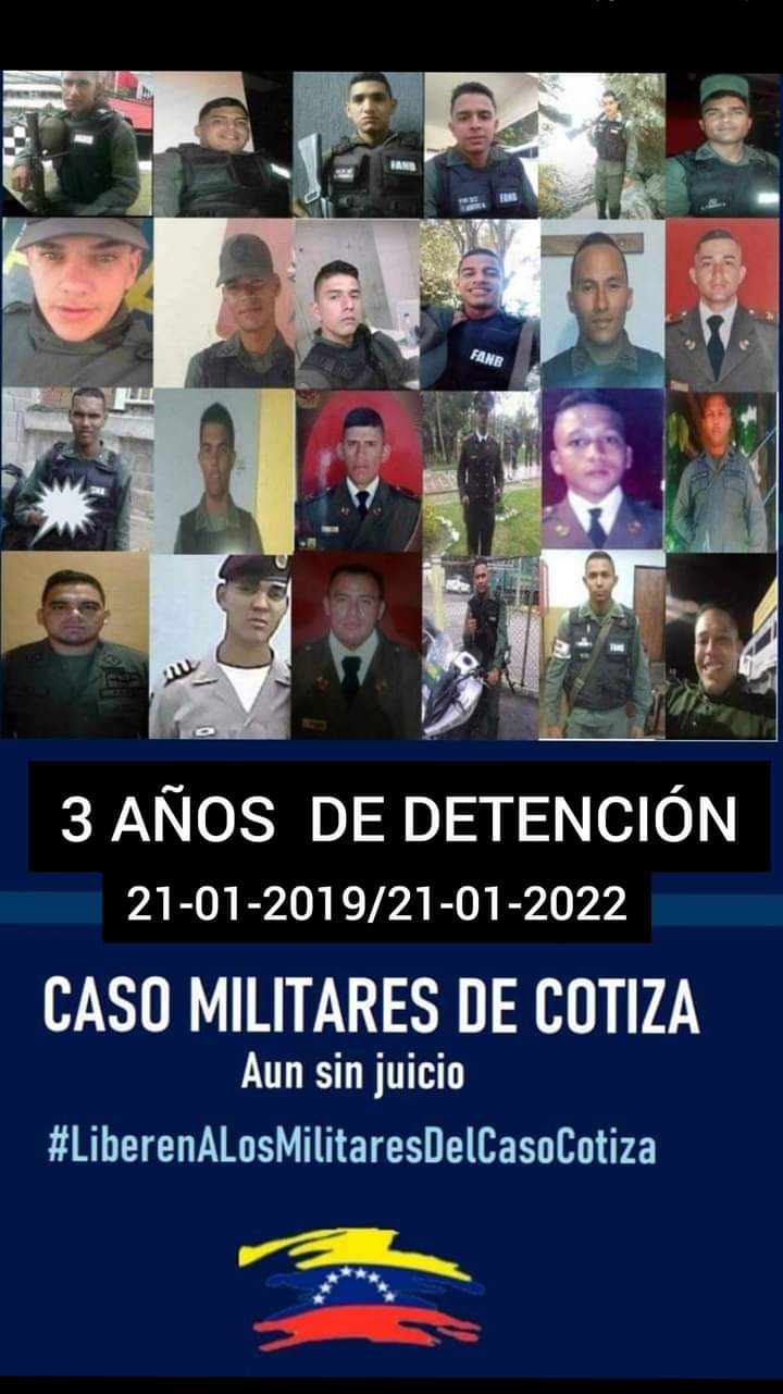 A esta hora, el sargento de tercera Luis Bandres Figueroa, luego de unos miles y tantos días de este hecho, sus familiares claman además de atención médica para que evalúen el estado en que se encuentra por las secuelas que han dejado las torturas, el hambre y tantas cosas más… Lo que sucedió en el comando de la Guardia Nacional en Cotiza es una muestra del sentimiento generalizado que impera dentro de la Fuerza Armada Nacional, también hoy en dia.