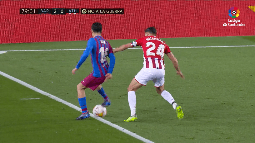 Un claro ejemplo del estado de gracia del conjunto ‘culé’ fue Pedri, que en la banda derecha le tiró un caño a un Balenziaga que no supo dónde meterse. El tinerfeño se libró de su marca con un detalle que desprende calidad por los cuatro costados.