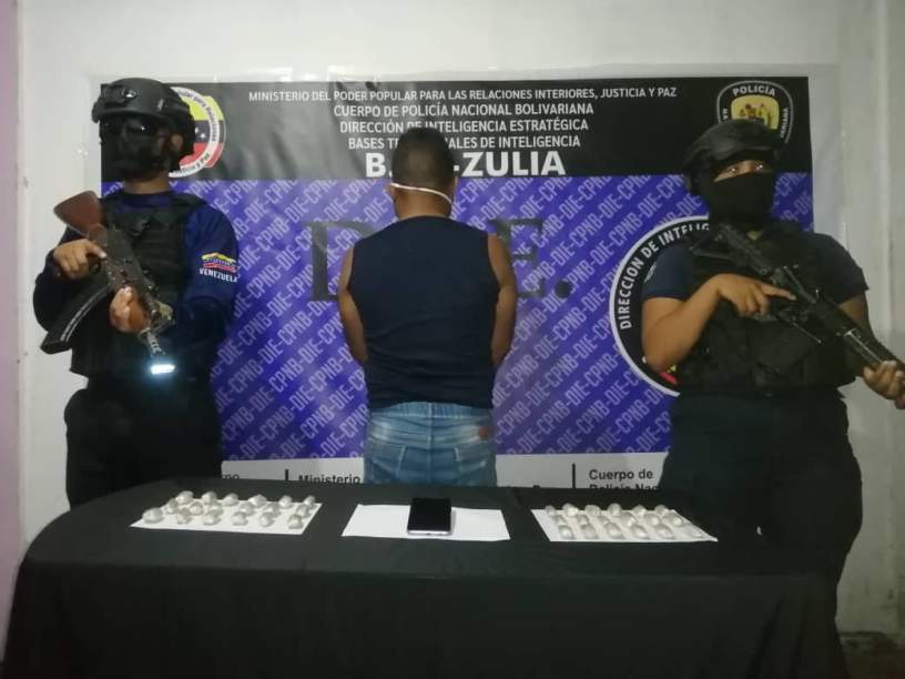 Tras labores de Investigación y análisis de denuncias en contra del GEDO de «Jairo Cachaco», efectivos del CNPB DIE Zulia, lograron la aprehensión en la localidad de Santa Bárbara, Av. Carlos Andrés, del ciudadano Luis Carlos Delgado González, de 36 años, integrante de dicha banda, quien era el encargado de la distribución de sustancias estupefacientes y psicotrópicas.