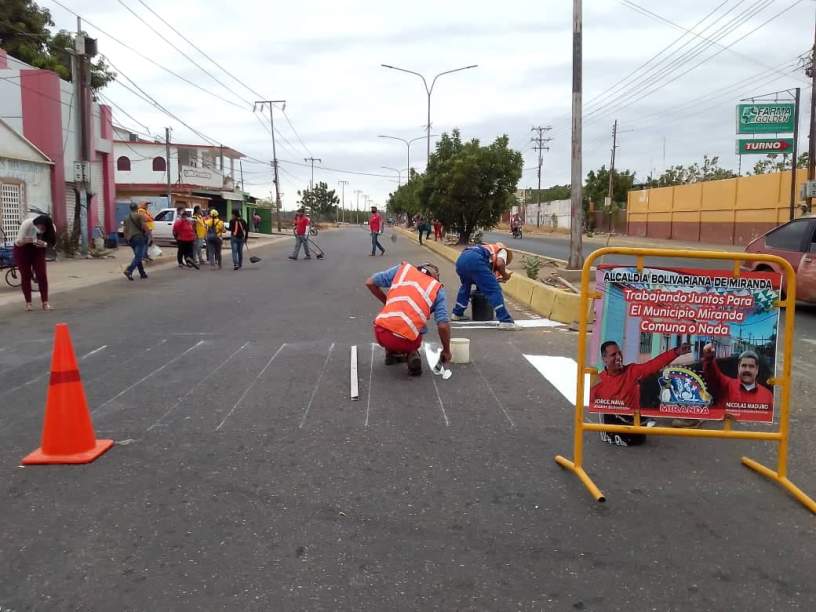 Cómo parte del programa del Gobierno del alcalde Bolivariano Jorge Nava, se inició la demarcación y señalización de la vía principal Valmore Rodríguez y la colocación de reflectores led, conocidos como ojos de gatos.
