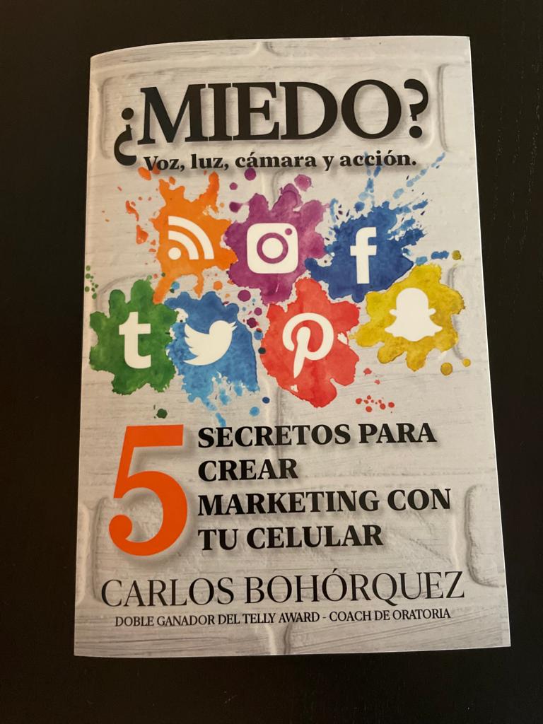 Carlos Bohórquez un brillante zuliano radicado en la ciudad de Tampa Florida EEUU licenciado en Comunicación Social graduado en la URBE, acaba de publicar su libro «Miedo? voz, luz, cámara y acción» que ilustra los 5 secretos para crear Marketing desde el teléfono movil celular.