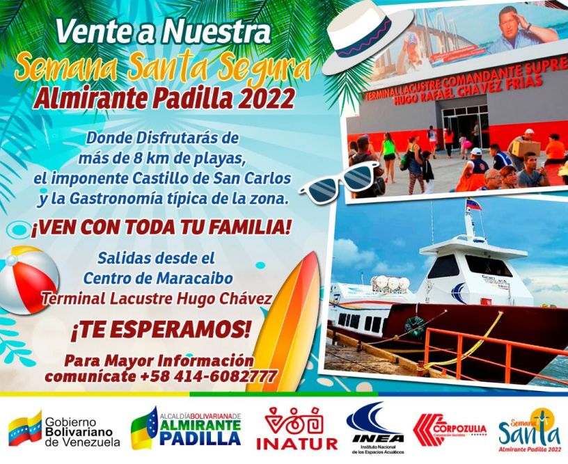 Desde el Terminal Lacustre Comandante Hugo Chávez Frías en una labor mancomunada entre el Gobierno Nacional, INATUR, INEA, Corpozulia, Alcaldía Almirante Padilla los temporadistas pueden movilizarse y disfrutar de más de los 8 kilómetros de playas del imponente Castillo San Carlos y disfrutar de la típica gastronomía de la zona. Para más información pueden comunicarse al 0414-6082777.