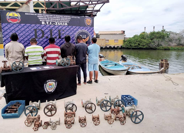 Funcionarios de la Brigada Lacustre de la Dirección de Inteligencia Estratégica de la Policía Nacional Bolivariana detuvo a seis personas por robo de material estratégico de Petróleos de Venezuela (Pdvsa) en el municipio Mara, en el estado Zulia, este 19 de abril.