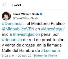 Fue mediante su cuenta en Twitter, que Tarek William Saab, lo anunció minutos después de salir de la inauguración del Comedor Popular de Lechería.