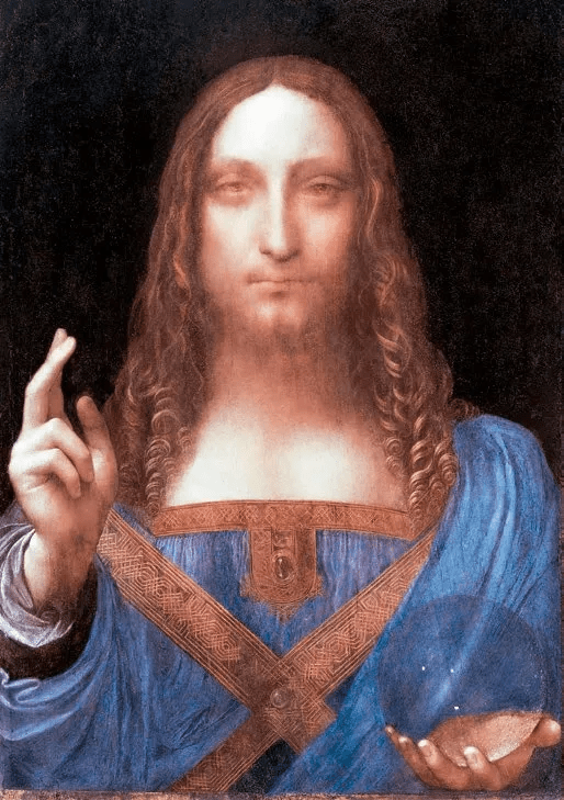 La pintura de Leonardo da Vinci, tiene una esfera de cristal transparente con tres puntos blancos. Sus distancias desde el centro definen el tamaño de la pupila del ojo. Una línea desde el centro de la esfera a través del tamaño normal de la pupila sale por la esquina de un cuadrado y se refleja en el marco dos veces y se conecta con el punto blanco en su ojo en el lado claro de la pintura.