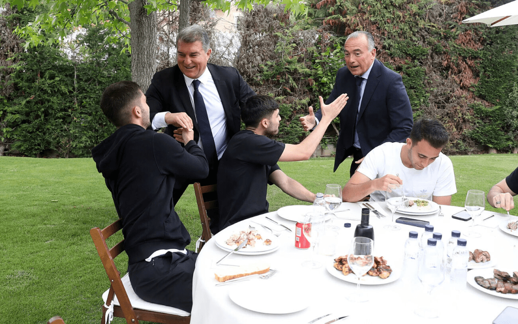 El Fútbol Club Barcelona publicó un vídeo de cómo fue la barbacoa de conjura del conjunto azulgrana. El primer equipo, con el staff y parte de la directiva azulgrana la celebraron tras el entrenamiento y en ella se vieron detalles, como el gesto a modo de colleja que tuvo Laporta con Pedri para saludarle a su llegada. El joven futbolista llegó a la barbacoa con Eric García tomando una bebida de recuperación.