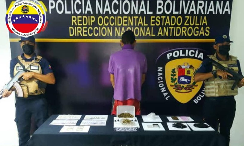 Los uniformados incautaron nueve envoltorios de diferentes tamaños con un peso aproximado de 122 gramos de presunta marihuana, además, una balanza electrónica, un teléfono celular y dinero en moneda extranjera.
