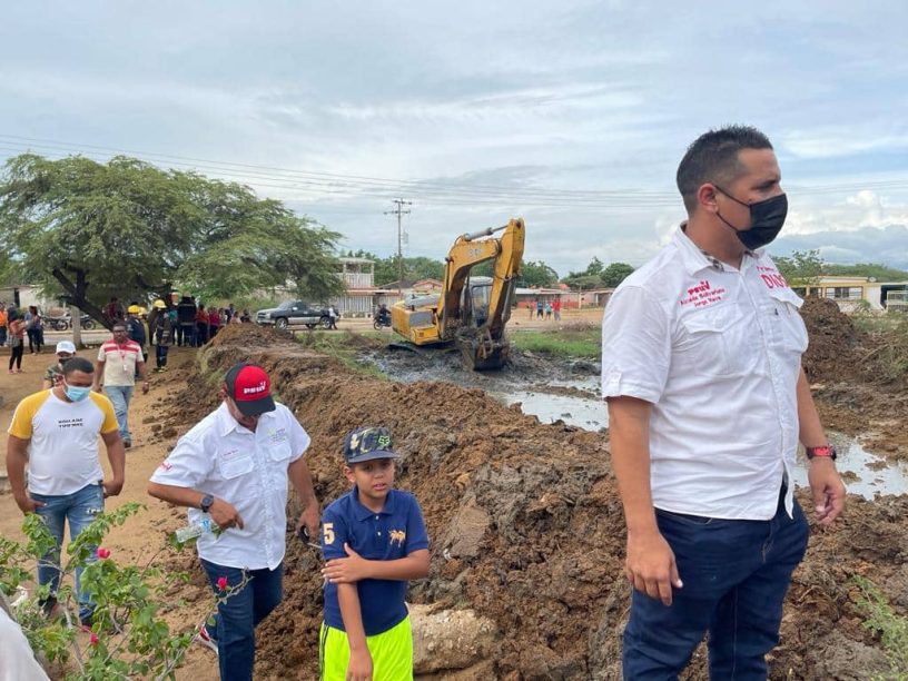 Debido a las fuertes precipitaciones sucitadas en el municipio Miranda y que han causado el desbordamiento y estancamiento de aguas que dificultan el paso peatonal, el alcalde Bolivariano Jorge Nava, junto a todo su equipo de trabajo y empresas aliadas se desplegaron este día miércoles, 11 de mayo por varias comunidades de esta entidad, específicamente en el sector Nuevo Caimito en su calle principal. Esto con el objetivo de limpiar y desmalezar la cañada ubicada en esta comunidad.