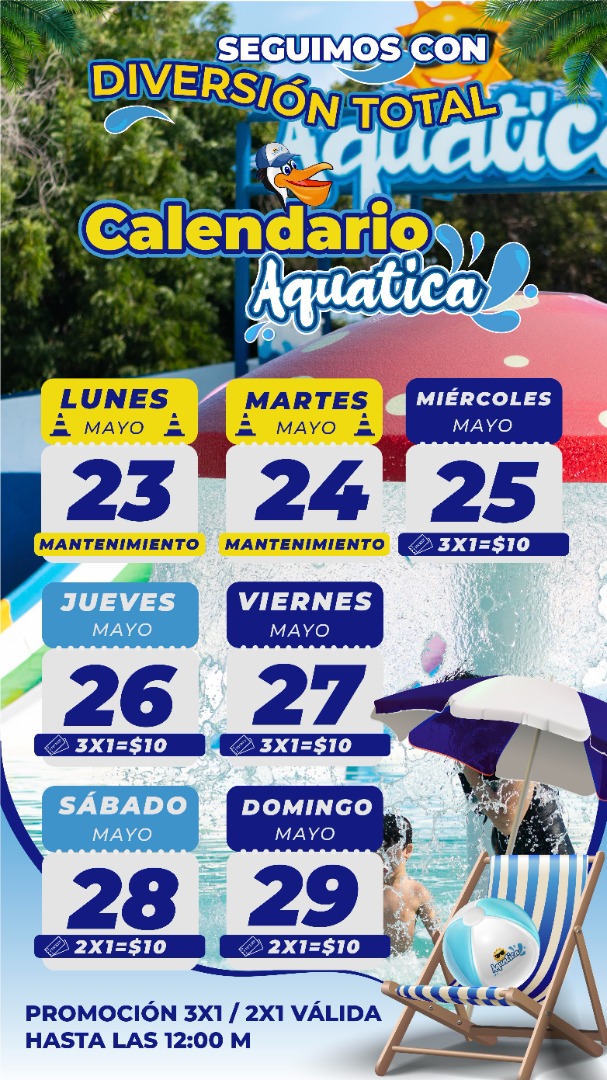 Aquatica continúa la diversión en La Vereda del Lago, el calendario disponible al público a partir de este 25 de mayo, puedes disfrutar de sus espacios.