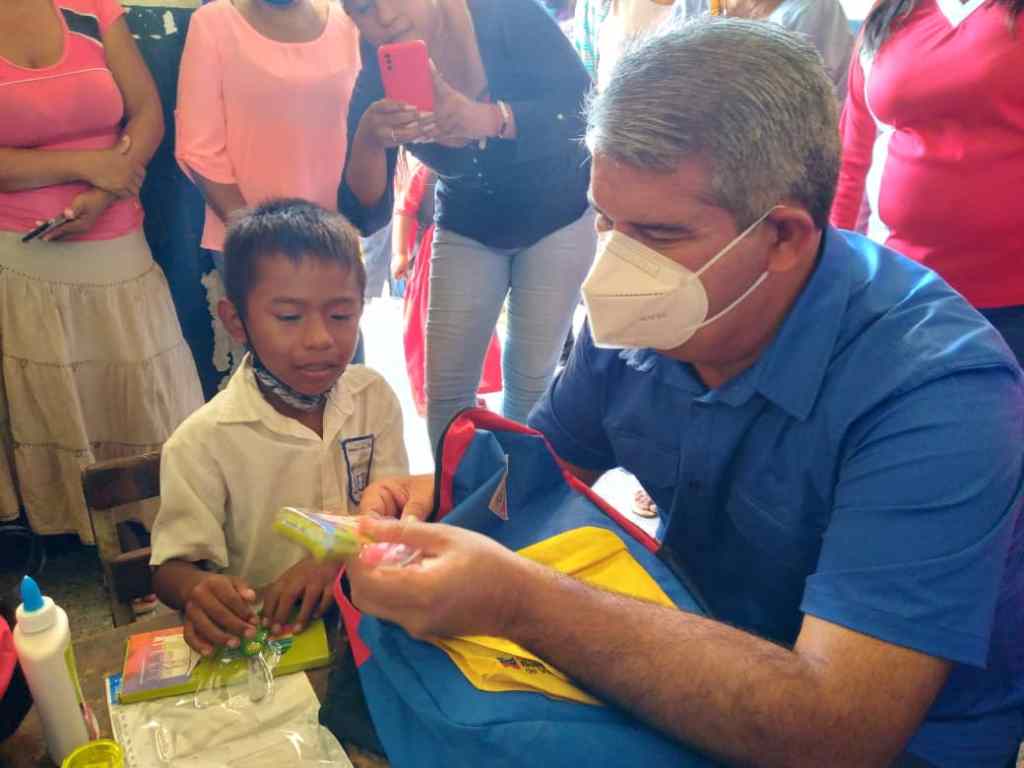 «Con los maestros y maestras, nuestros niños y niñas, hoy hacemos la entrega de 246 uniformes y morrales, desde esta escuela indígena decimos que aquí está el futuro de nuestra Patria, legado del comandante Chávez», explicó Caldera.