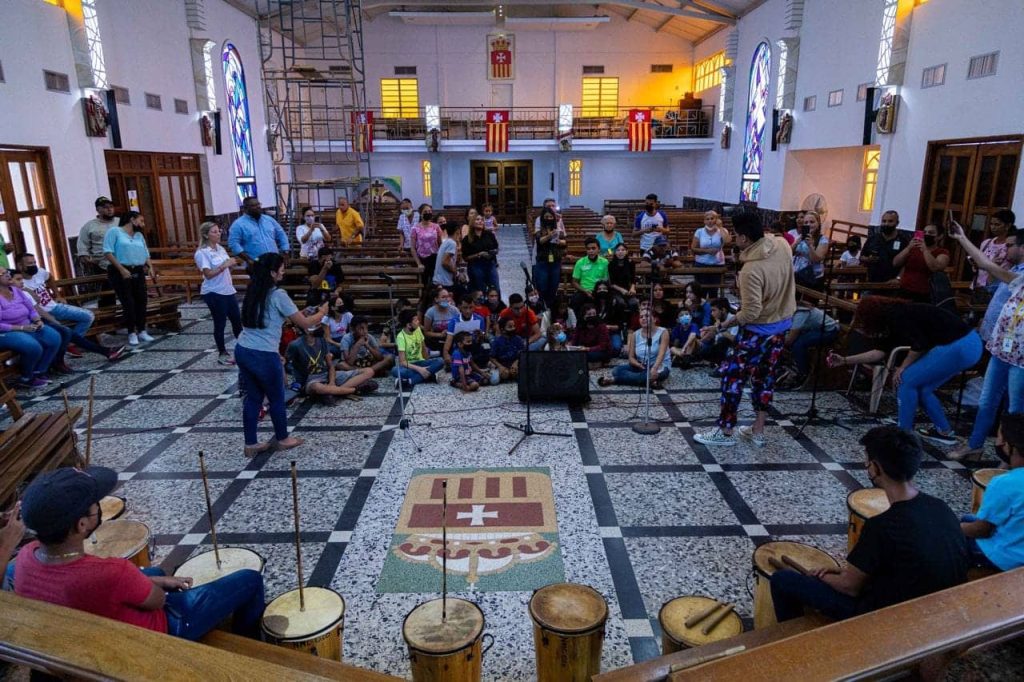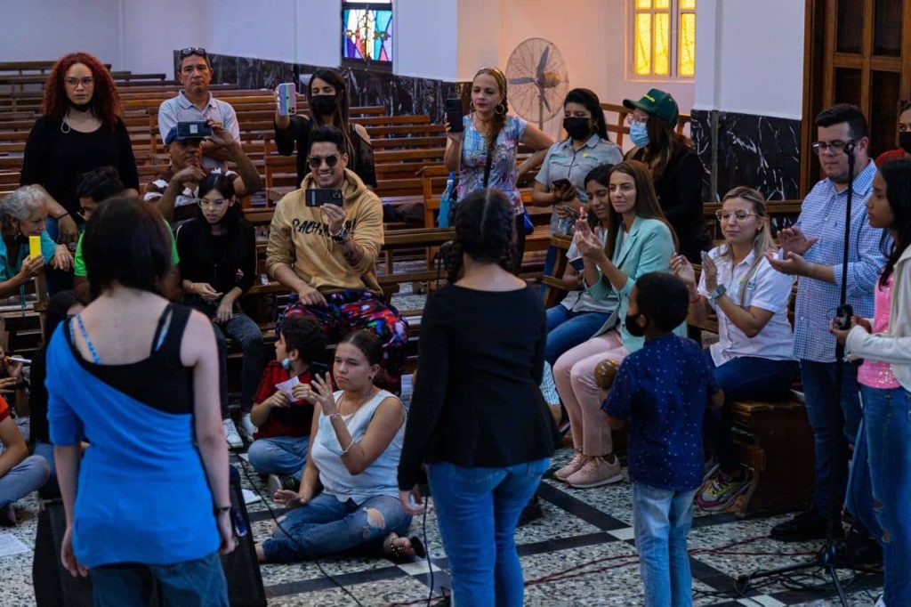 Los alumnos de las escuelas: Renato Aguirre, Ricardo Portillo, Tino Rodríguez, Betty Alvarado y Gaiteritos de Tío Freddy participaron en el encuentro con el excantante del dúo marabino Caibo en la Iglesia Nuestra Señora de Fátima._