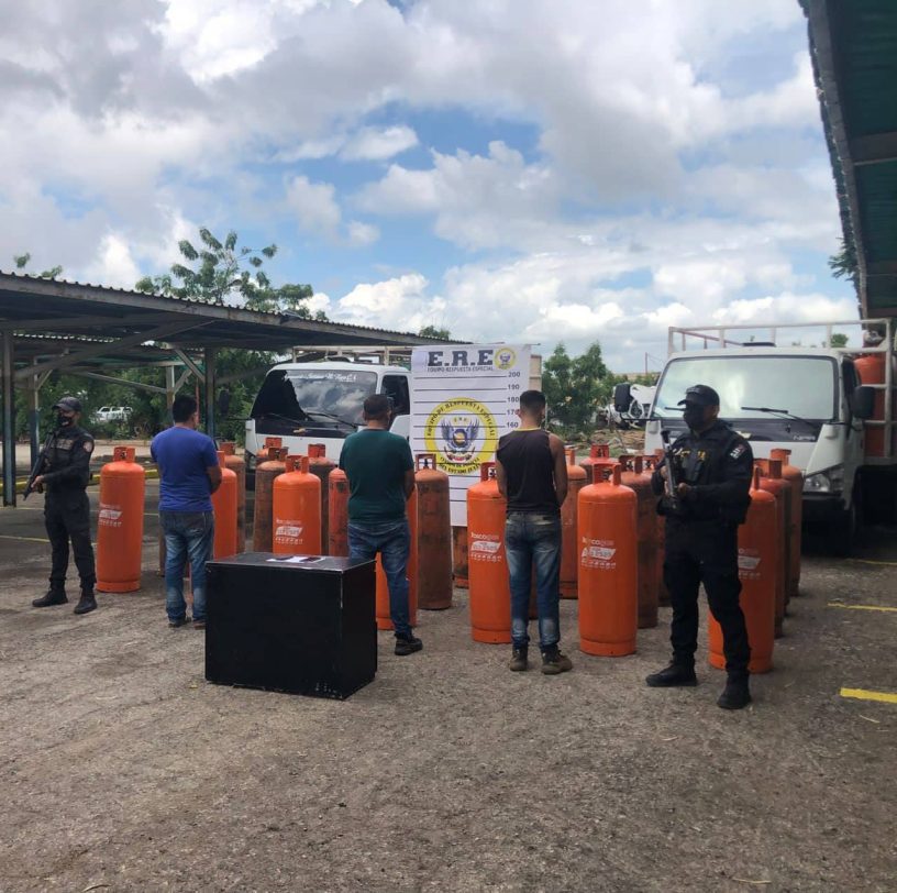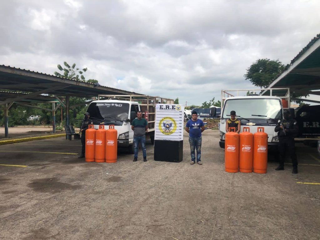 En el operativo fueron incautados dos camiones Chevrolet NPR, de color blanco, tipo plataforma con estructura metálica, donde en uno de ellos se localizaron 23 bombonas o cilindros de gas propano, de las cuales 20 eran de capacidad de 30.9 kilos, de color naranja con una figura pintada con spray blanco, donde se puede leer ROCO GAS, perteneciente a una empresa colombiana de gas; las otras tres son 10 kilos, de color blanca.