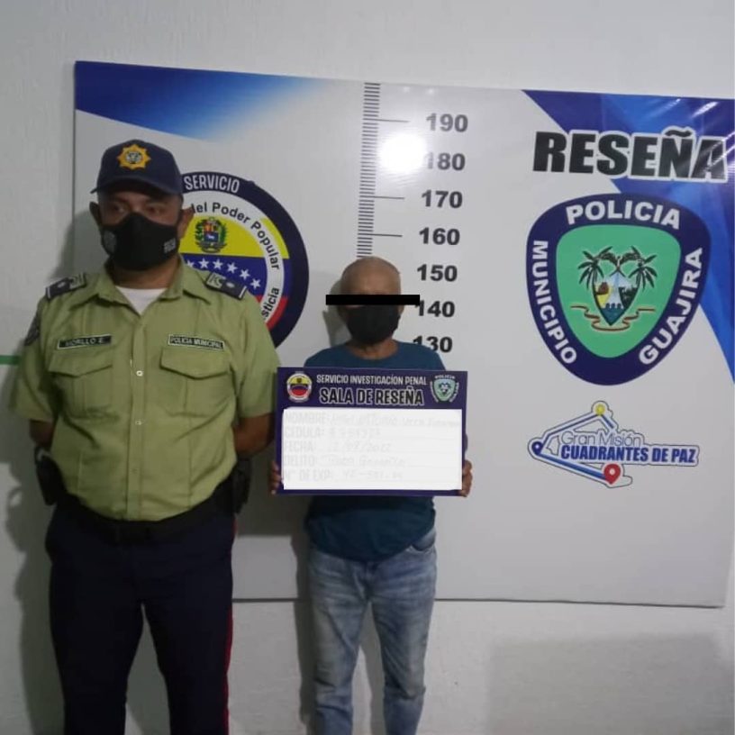 Funcionarios del Centro de Coordinación Policial del Municipio Guajira (P.D.M.G) detuvieron este viernes en horas de la noche a Ángel Fuenmayor de 67 años de edad oriundo del Municipio Maracaibo, por estar solicitado ante el Juzgado Cuarto de Ejecución Maracaibo-Zulia desde el 02 de abril de 2008 por robo.