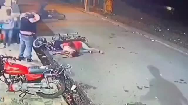 Una mujer que aparenta ser una tercera cómplice se acerca rápidamente con otra moto para que el responsable de ese acto pueda emprender la fuga. Segundos después, ella lamenta la muerte de su supuesta pareja.