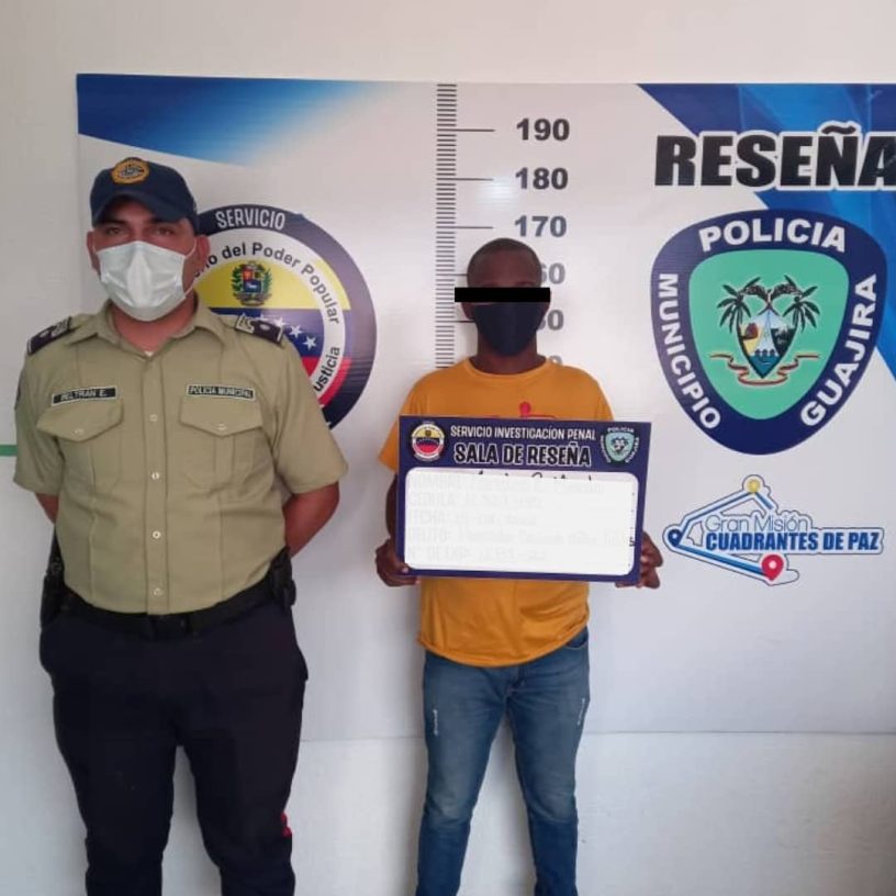 De inmediato fue trasladado al Centro de Coordinación de la Policía Municipal de la Guajira donde quedó a disposición del Ministerio Público.