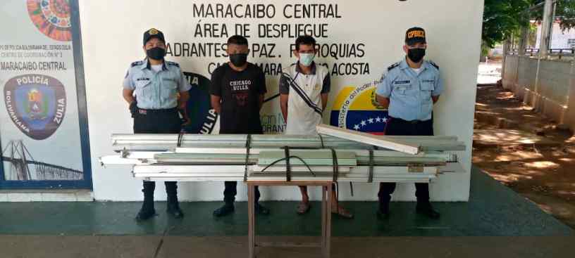 Según informó el director general del Cuerpo de Policía del estado Zulia (Cpez), Sergio Villasmil Rondón, al llegar al sitio los uniformados encontraron a Andri González, de 19 años; y a Rafael Arcángel, de 29, con 60 tramos de ángulos de aluminios, extraídos de la estructura del hospital.