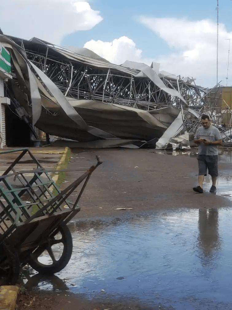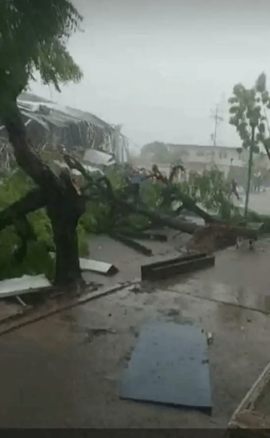 Según reporte de habitantes de la zona, varios sectores están sin electricidad y fue arrasado el techo del Mercado Municipal así como varias canchas deportivas quedaron sin techo.