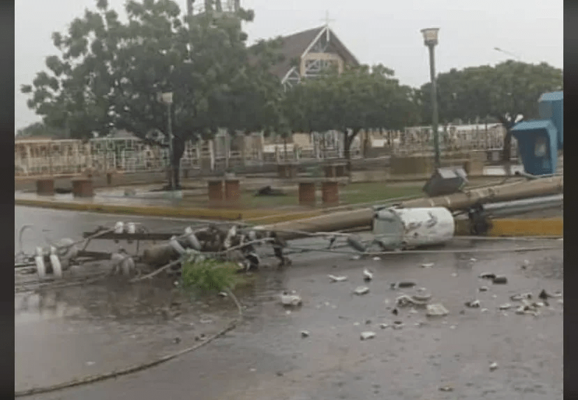 El ventarrón provocó la caída de postes de electricidad dejando sin servicio a zonas de la parroquia Chiquinquirá, la Ensenada y Palmarejo, además del casco central.