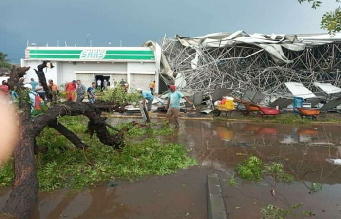 Según reporte de habitantes de la zona, varios sectores están sin electricidad y fue arrasado el techo del Mercado Municipal así como varias canchas deportivas quedaron sin techo.